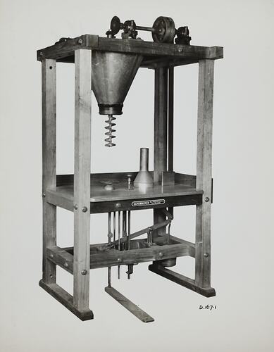Printed in black on front of photograph: 'D.167-1' Printed in black ink on back of photograph: 'Kerr / BROS. / COMMERCIAL / PHOTOGRAPHERS / 533 COLLINS ST. MELBOURNE' Printed in red ink on back of photograph: 'PHOTO FILE NO. / SECTION NO. / OFFICE COPY' Printed in black ink on the back of photograph: 'LIGHTNING FILLER' Hand written in grey pencil on back of photograph: '1 / 8B'