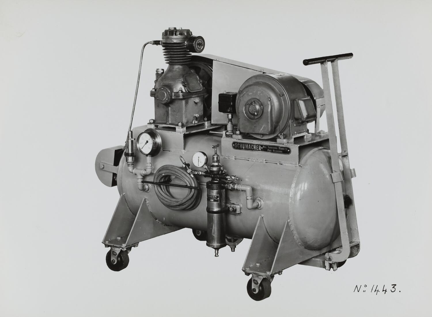 Printed in black on front of photograph: 'No.1443.' Printed in black ink on back of photograph: 'Kerr / BROS. / COMMERCIAL / PHOTOGRAPHERS / 533 COLLINS ST. MELBOURNE'