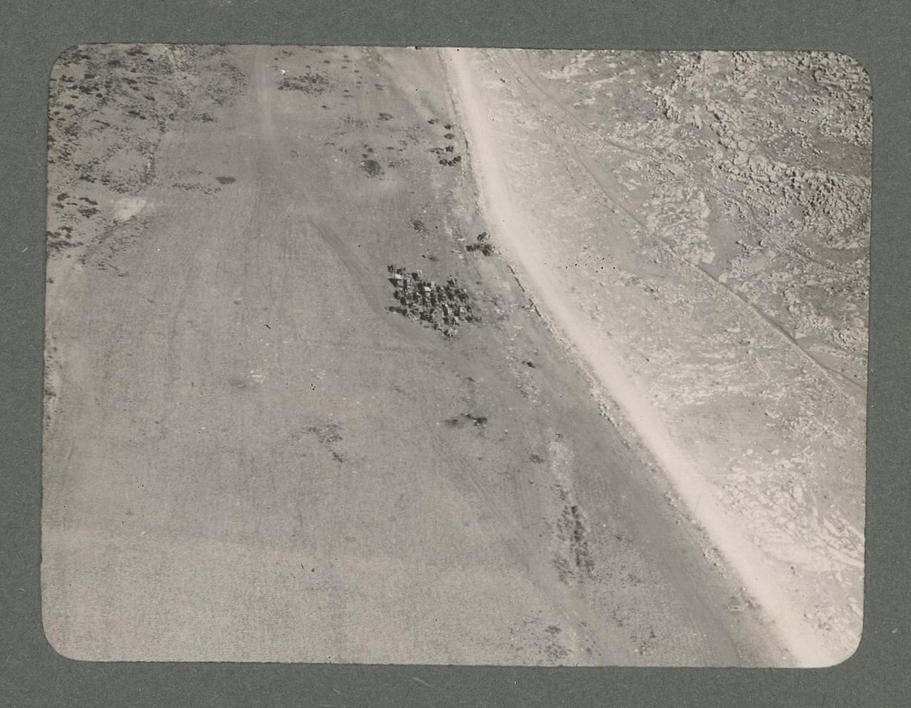 One of an album of 32 black and white photographs of the Middle East during World War I, probably taken by Australian Flying Corps photographer Norman Henry Clutterbuck, the maternal uncle of the previous owner Ray Kerby. The album mostly contains aerial photographs of locations around the Middle East, some of which appear to be duplicates of photographs found in the war diaries of the No. 1 Squadron, Australian Flying Corps, held at the Australian War Memorial. The album also contains images of what appears to be either the Second or Third Gaza Campaigns. The album ST 41220, from the same source, contains copies of some of the images in this album.