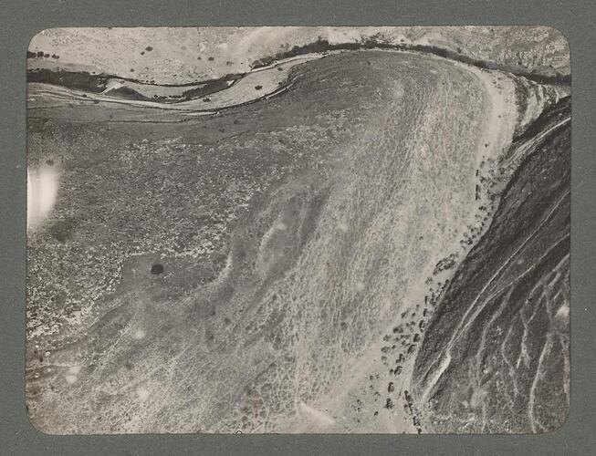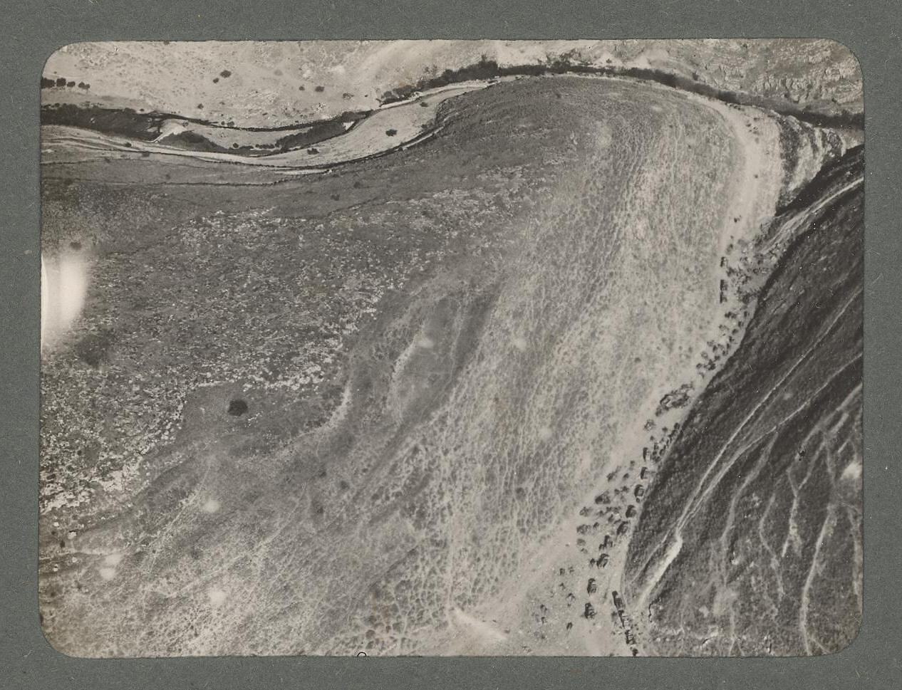 One of an album of 32 black and white photographs of the Middle East during World War I, probably taken by Australian Flying Corps photographer Norman Henry Clutterbuck, the maternal uncle of the previous owner Ray Kerby. The album mostly contains aerial photographs of locations around the Middle East, some of which appear to be duplicates of photographs found in the war diaries of the No. 1 Squadron, Australian Flying Corps, held at the Australian War Memorial. The album also contains images of what appears to be either the Second or Third Gaza Campaigns. The album ST 41220, from the same source, contains copies of some of the images in this album.