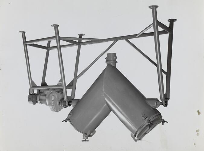Black and white promotional image of machinery. It is part of a collection of photographs and marked printer's copy used in the preparation of trade literature promoting products manufactured by the Schumacher Mill Furnishing Works Pty Ltd. The items were originally housed in a wooden filing drawer, with many filed by subject.