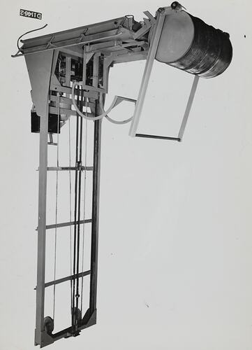Black and white promotional image of machinery. It is part of a collection of photographs and marked printer's copy used in the preparation of trade literature promoting products manufactured by the Schumacher Mill Furnishing Works Pty Ltd. The items were originally housed in a wooden filing drawer, with many filed by subject.