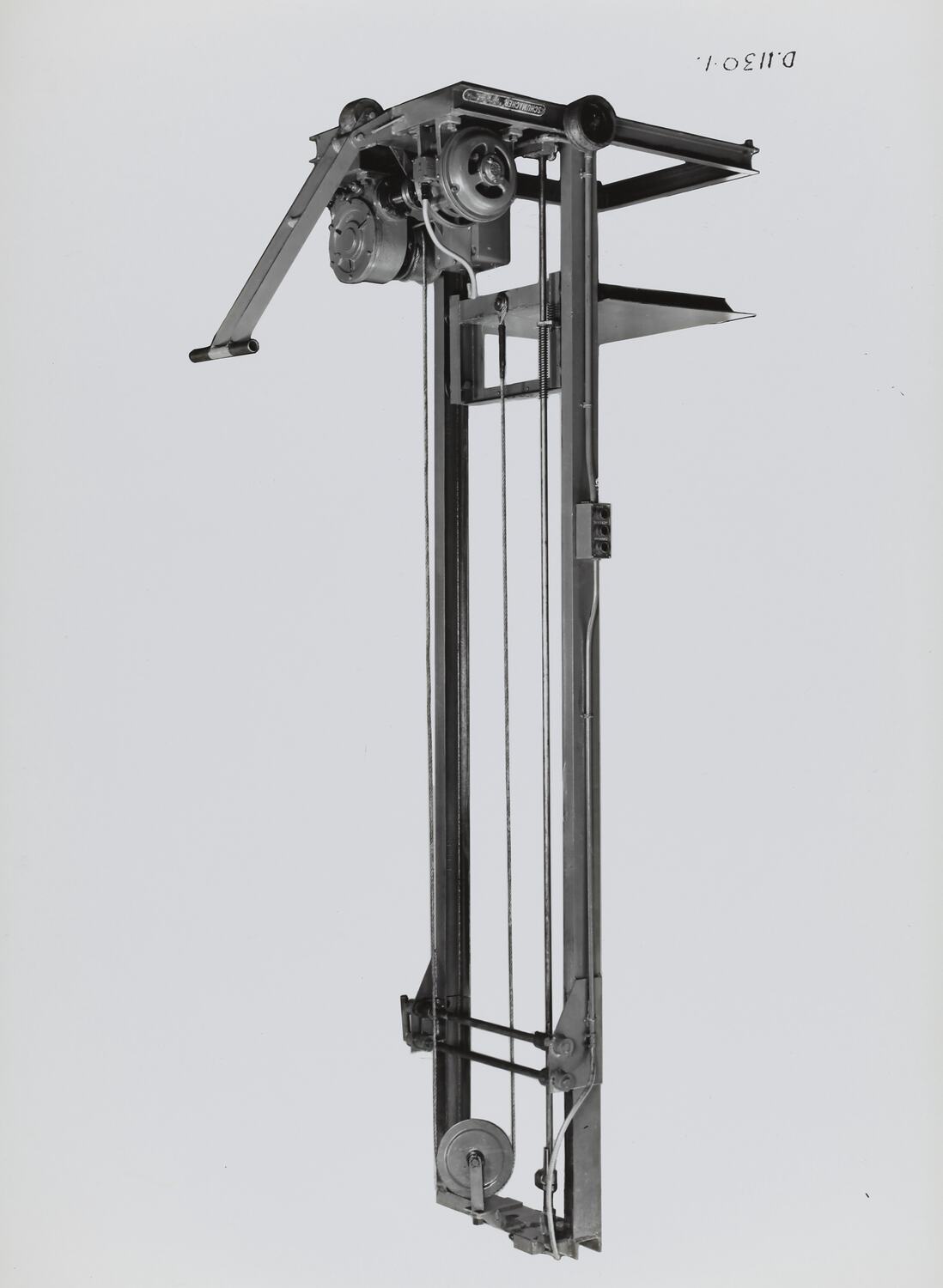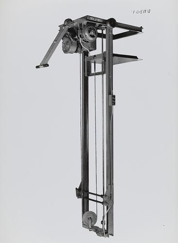 Black and white promotional image of machinery. It is part of a collection of photographs and marked printer's copy used in the preparation of trade literature promoting products manufactured by the Schumacher Mill Furnishing Works Pty Ltd. The items were originally housed in a wooden filing drawer, with many filed by subject.