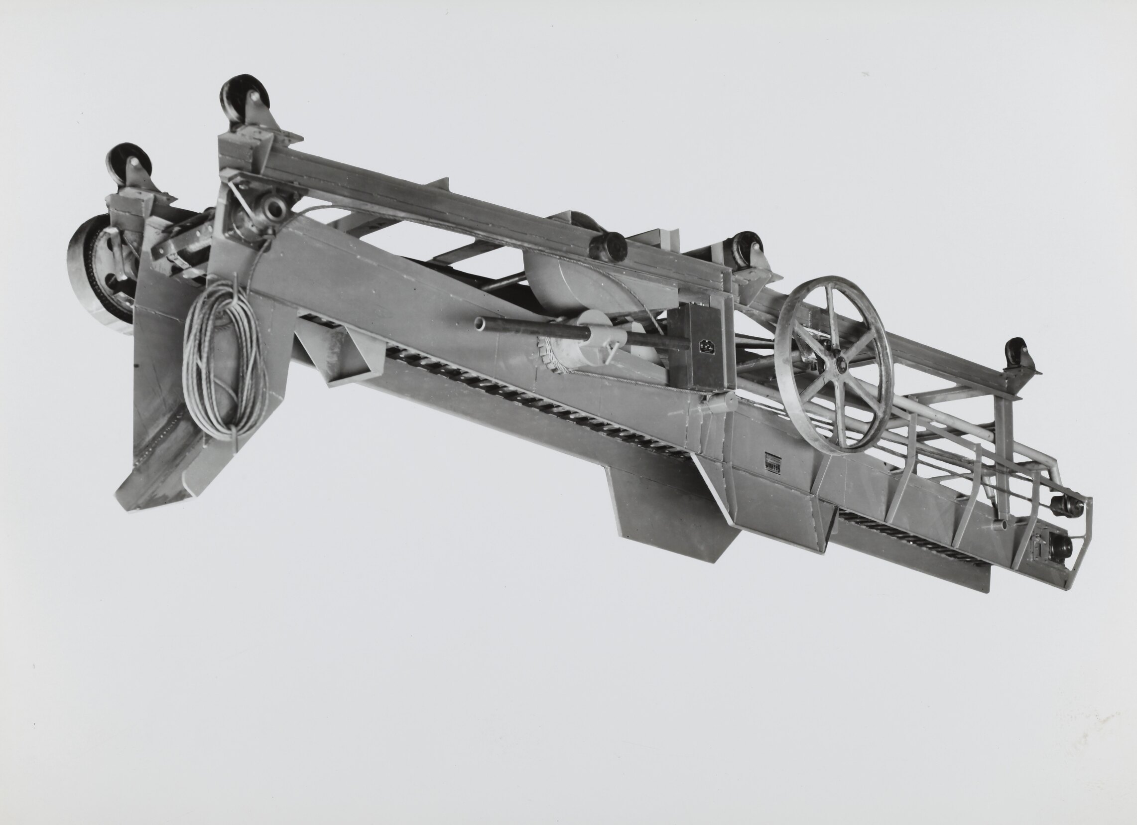 Black and white promotional image of machinery. It is part of a collection of photographs and marked printer's copy used in the preparation of trade literature promoting products manufactured by the Schumacher Mill Furnishing Works Pty Ltd. The items were originally housed in a wooden filing drawer, with many filed by subject.