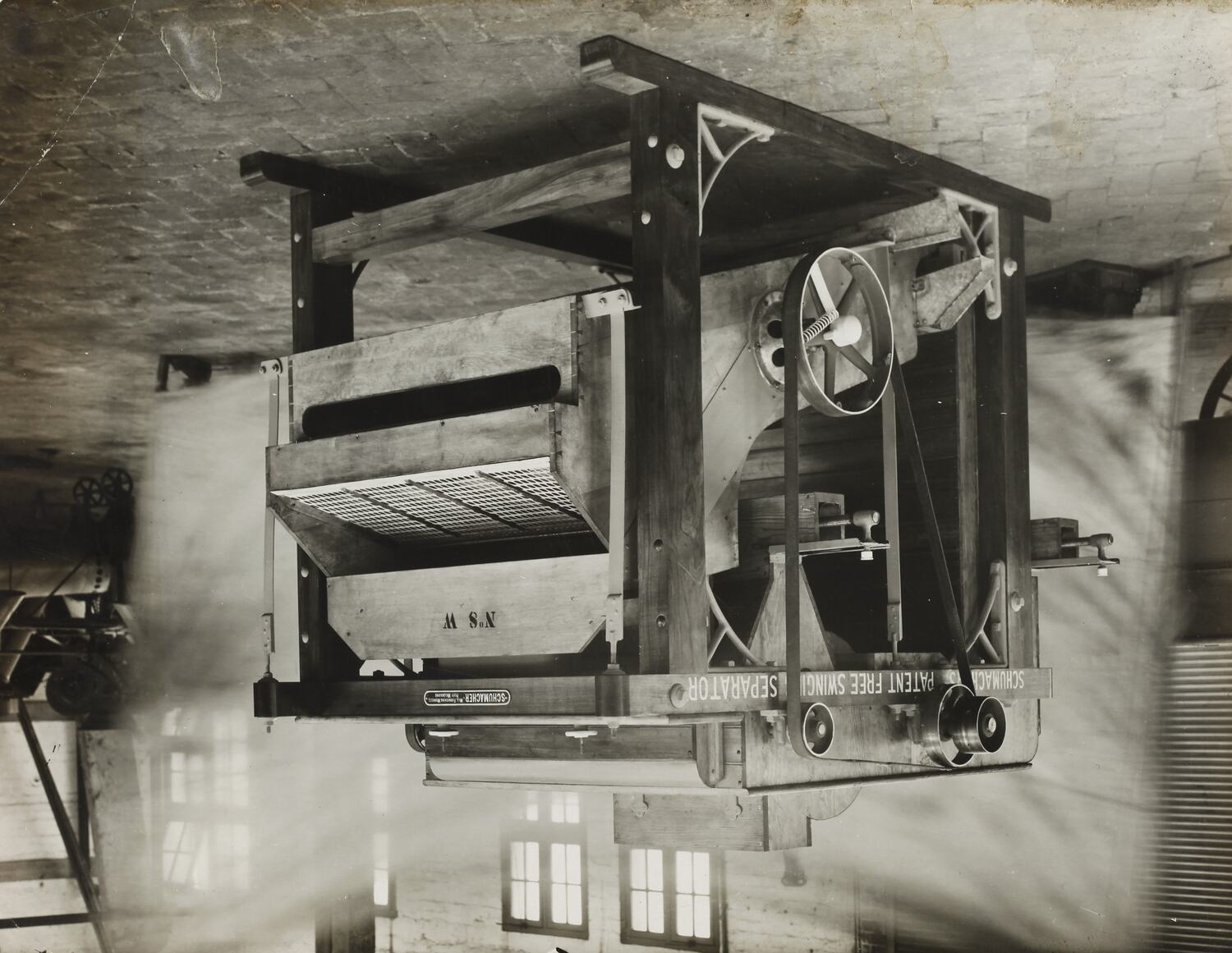 The Schumacher Mill Furnishing Works of Port Melbourne was established by the German-born American immigrant Otto Charles Schumacher around 1890. Operating initially under the name Otto C. Schumacher, the firm specialised in the importation, manufacture, installation and repair of flourmilling equipment, especially the newer style roller flour grinding machines, and associated equipment such as flour sifters, pollard and bran extractors, dust collectors, grain elevators and bag fillers. The business was formally registered as the Schumacher Mill Furnishing Works Pty Ltd in 1910. In later years the firm diversified into the manufacture of grain grading machinery for farmers and more general manufacturing equipment such as grinding mills, conveyors and packaging machinery.