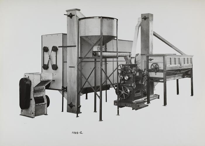 The Schumacher Mill Furnishing Works of Port Melbourne was established by the German-born American immigrant Otto Charles Schumacher around 1890. Operating initially under the name Otto C. Schumacher, the firm specialised in the importation, manufacture, installation and repair of flourmilling equipment, especially the newer style roller flour grinding machines, and associated equipment such as flour sifters, pollard and bran extractors, dust collectors, grain elevators and bag fillers. The business was formally registered as the Schumacher Mill Furnishing Works Pty Ltd in 1910. In later years the firm diversified into the manufacture of grain grading machinery for farmers and more general manufacturing equipment such as grinding mills, conveyors and packaging machinery.