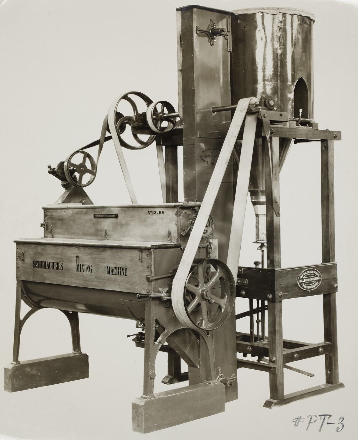 The Schumacher Mill Furnishing Works of Port Melbourne was established by the German-born American immigrant Otto Charles Schumacher around 1890. Operating initially under the name Otto C. Schumacher, the firm specialised in the importation, manufacture, installation and repair of flourmilling equipment, especially the newer style roller flour grinding machines, and associated equipment such as flour sifters, pollard and bran extractors, dust collectors, grain elevators and bag fillers. The business was formally registered as the Schumacher Mill Furnishing Works Pty Ltd in 1910. In later years the firm diversified into the manufacture of grain grading machinery for farmers and more general manufacturing equipment such as grinding mills, conveyors and packaging machinery.