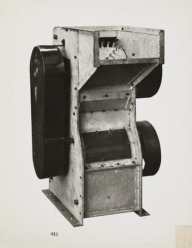 Printed on the front of photograph: '1153.' Printed in purple ink on the back of photograph: 'Kerr / BROS. / COMMERCIAL / PHOTOGRAPHERS / 533 COLLINS ST. MELBOURNE' Printed in black ink on cream label attached to back of photograph: 'From / Schumacher Mill Furnishing Works / PROPRIETARY LIMITED. / Supplied under Works O.N. / 40137. dated 25/9/40. / PORT MELBOURNE, / VICTORIA.' Printed in red ink on cream label attached to back of photograph: 'CASEIN BREAKER & REDUCER - -' Handwritten in grey pencil on the back of photograph: '40137'