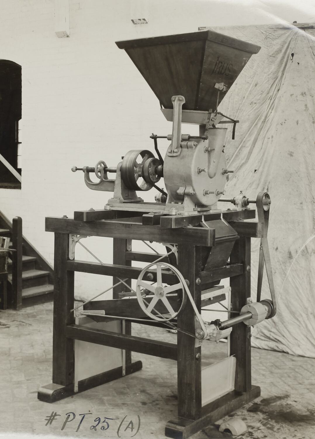 Hand written in black ink on front of photograph: '#PT25(A)' Printed in red ink on back of photograph: 'PHOTO FILE NO. / SECTION NO.' Hand written in red pencil on back of photograph: 'OFFICE COPY' Hand written in grey pencil on back of photograph: 'Sawdust Milling Plant / A/C "Granolithic Floors" / 16'