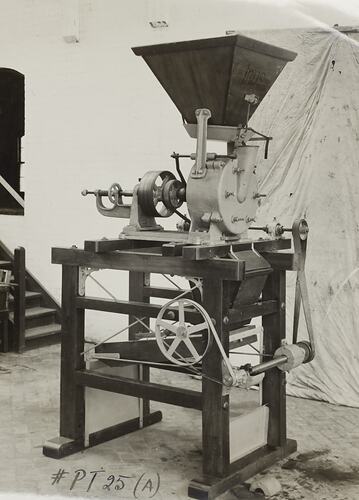 The Schumacher Mill Furnishing Works of Port Melbourne was established by the German-born American immigrant Otto Charles Schumacher around 1890. Operating initially under the name Otto C. Schumacher, the firm specialised in the importation, manufacture, installation and repair of flourmilling equipment, especially the newer style roller flour grinding machines, and associated equipment such as flour sifters, pollard and bran extractors, dust collectors, grain elevators and bag fillers. The business was formally registered as the Schumacher Mill Furnishing Works Pty Ltd in 1910. In later years the firm diversified into the manufacture of grain grading machinery for farmers and more general manufacturing equipment such as grinding mills, conveyors and packaging machinery.