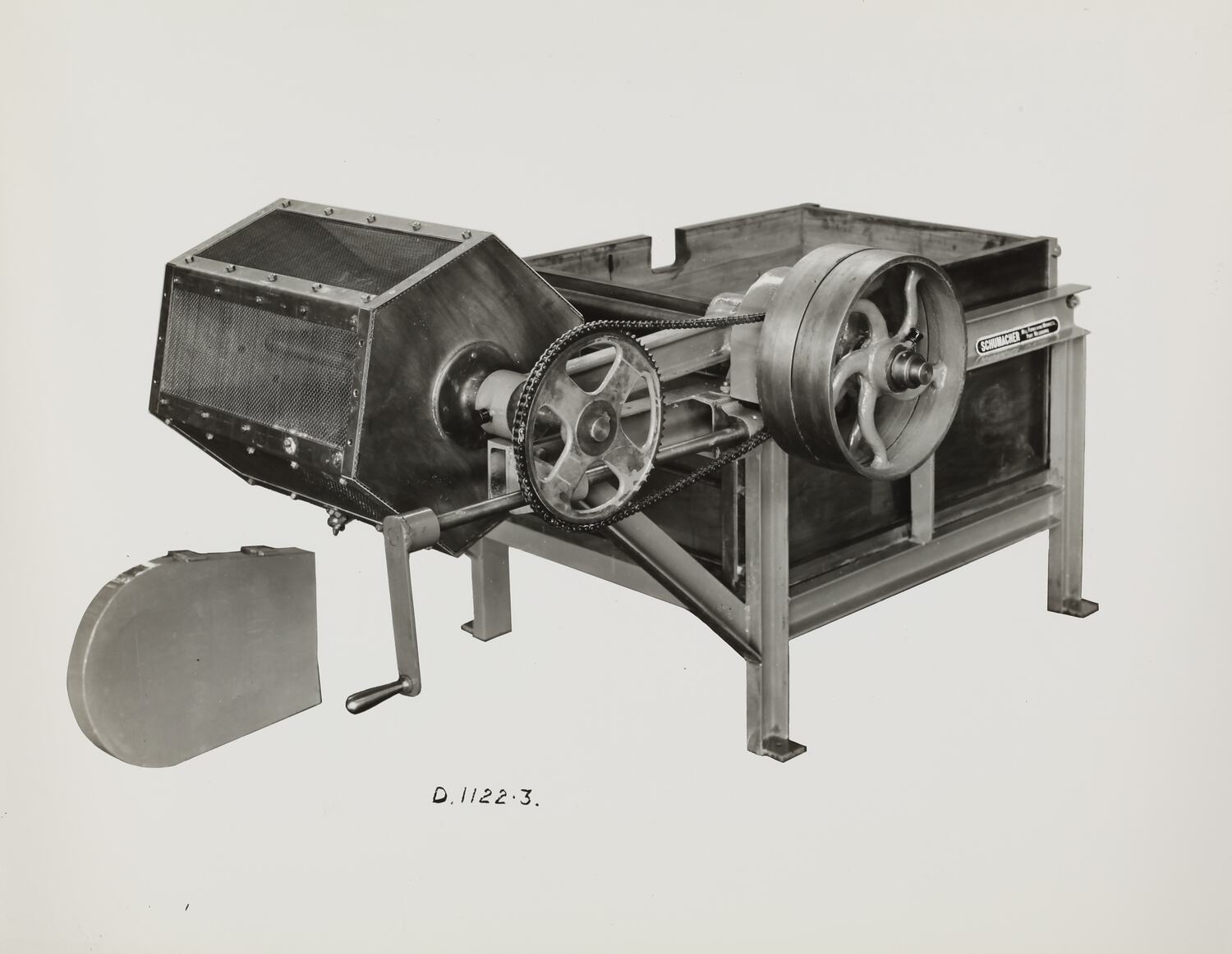 Printed on the front of photograph: 'D.1122-3.' Printed in black ink on back of photograph: 'SCHUMACHER MILL FURNISHING WORKS PTY. LTD. / GRAHAM ST. PORT MELBOURNE. / S. C. 7 VICTORIA. / TELEPHONE MX 2171'