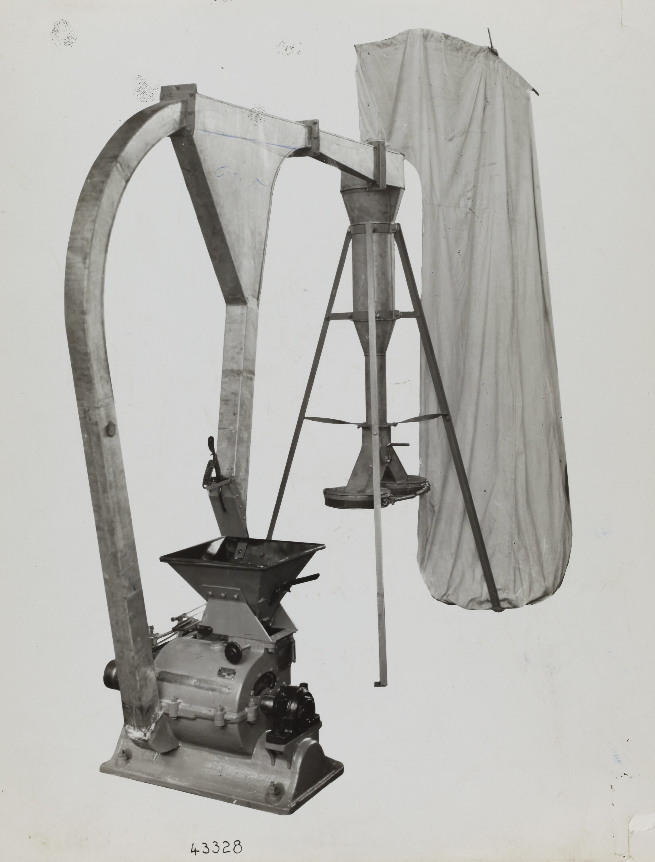 Printed in black on front of photograph: '43328' Printed in black ink on back of photograph: 'Kerr / BROS. / COMMERCIAL / PHOTOGRAPHERS / 533 COLLINS ST. MELBOURNE' Hand written in grey pencil on back of photograph: '[indecipherable] / Graham Engineering / 50 Rose St / Fitzroy / JA4945 / JA2810 / mill £360 / motor & pulley £75 / [indecipherable]'