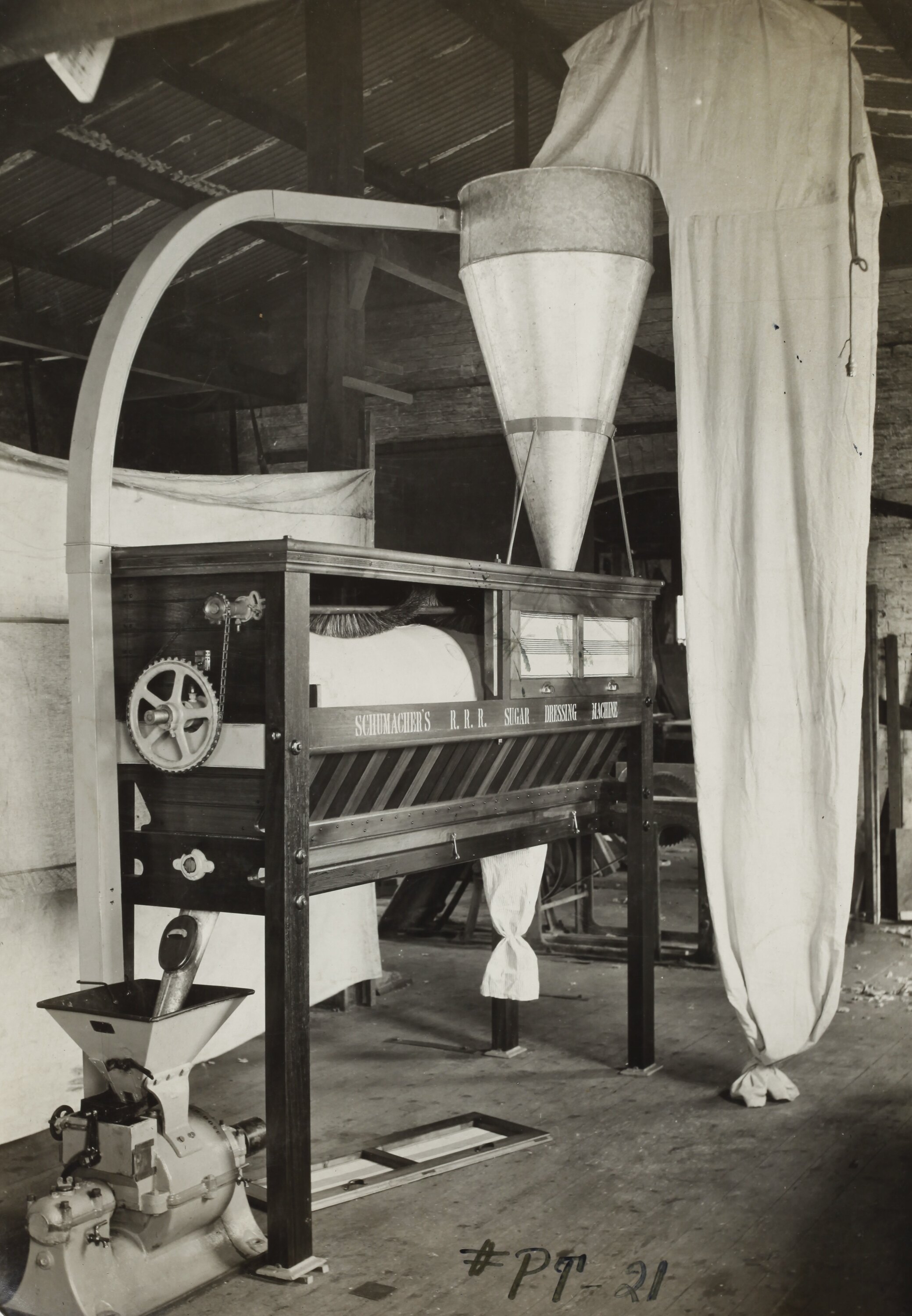 The Schumacher Mill Furnishing Works of Port Melbourne was established by the German-born American immigrant Otto Charles Schumacher around 1890. Operating initially under the name Otto C. Schumacher, the firm specialised in the importation, manufacture, installation and repair of flourmilling equipment, especially the newer style roller flour grinding machines, and associated equipment such as flour sifters, pollard and bran extractors, dust collectors, grain elevators and bag fillers. The business was formally registered as the Schumacher Mill Furnishing Works Pty Ltd in 1910. In later years the firm diversified into the manufacture of grain grading machinery for farmers and more general manufacturing equipment such as grinding mills, conveyors and packaging machinery.