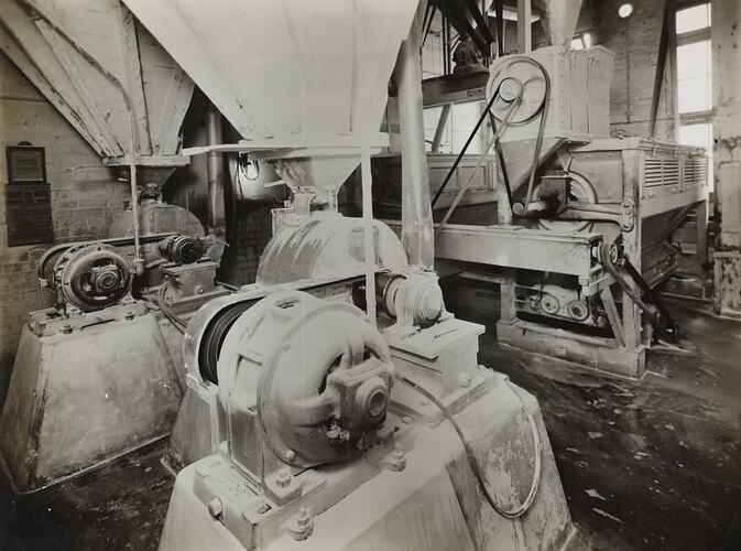 The Schumacher Mill Furnishing Works of Port Melbourne was established by the German-born American immigrant Otto Charles Schumacher around 1890. Operating initially under the name Otto C. Schumacher, the firm specialised in the importation, manufacture, installation and repair of flourmilling equipment, especially the newer style roller flour grinding machines, and associated equipment such as flour sifters, pollard and bran extractors, dust collectors, grain elevators and bag fillers. The business was formally registered as the Schumacher Mill Furnishing Works Pty Ltd in 1910. In later years the firm diversified into the manufacture of grain grading machinery for farmers and more general manufacturing equipment such as grinding mills, conveyors and packaging machinery.