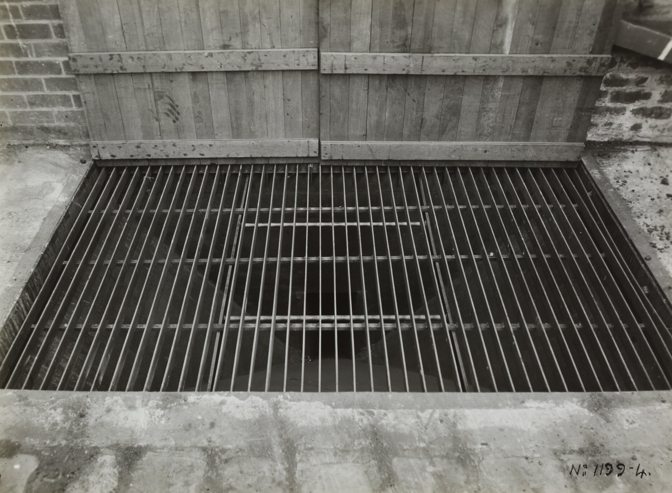 Black and white promotional image of a coal storage bunker. It is part of a collection of photographs and marked printer's copy used in the preparation of trade literature promoting products manufactured by the Schumacher Mill Furnishing Works Pty Ltd. The items were originally housed in a wooden filing drawer, with many filed by subject. This photograph was previously filed under 'COAL HANDLING.'.