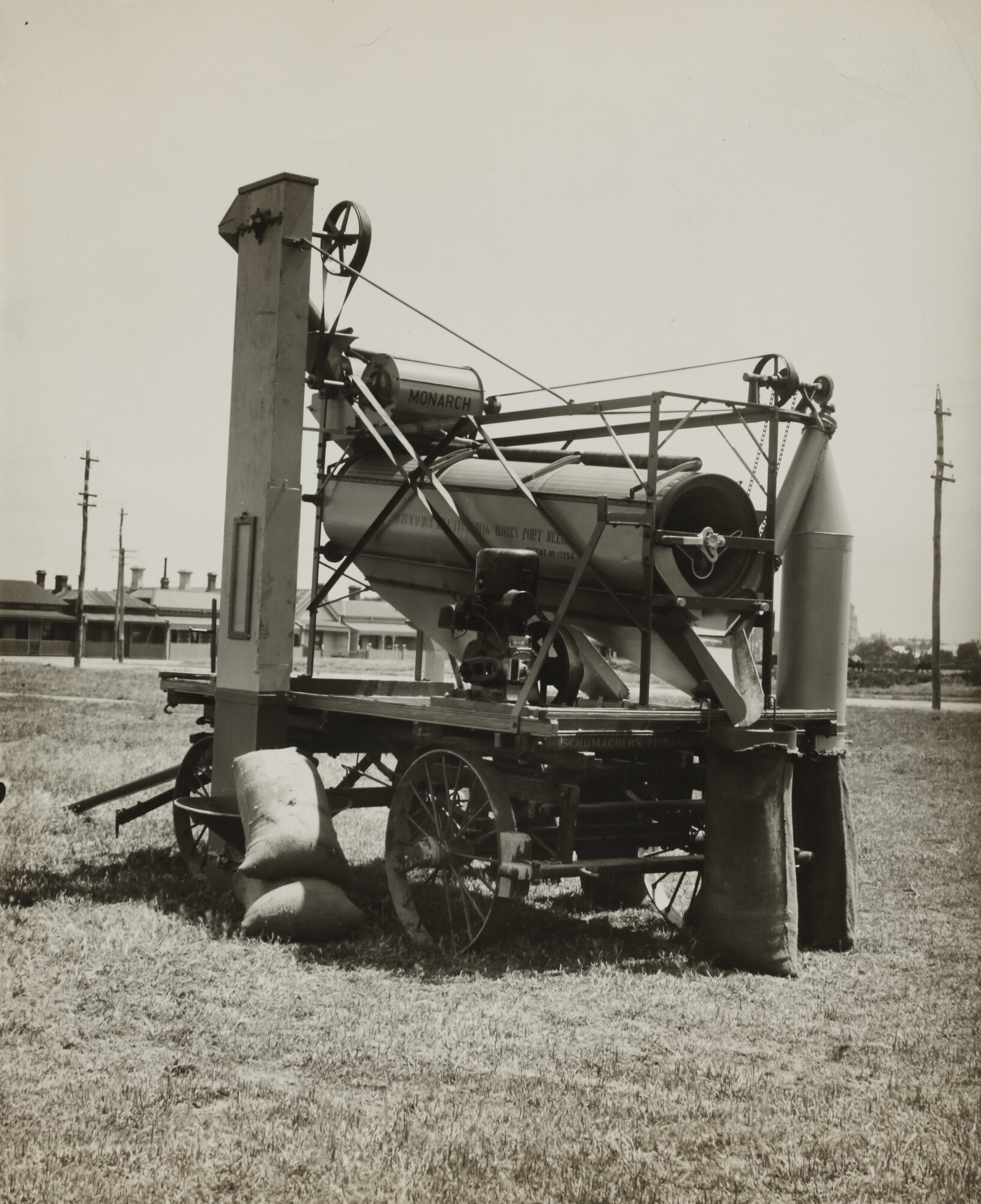 The Schumacher Mill Furnishing Works of Port Melbourne was established by the German-born American immigrant Otto Charles Schumacher around 1890. Operating initially under the name Otto C. Schumacher, the firm specialised in the importation, manufacture, installation and repair of flourmilling equipment, especially the newer style roller flour grinding machines, and associated equipment such as flour sifters, pollard and bran extractors, dust collectors, grain elevators and bag fillers. The business was formally registered as the Schumacher Mill Furnishing Works Pty Ltd in 1910. In later years the firm diversified into the manufacture of grain grading machinery for farmers and more general manufacturing equipment such as grinding mills, conveyors and packaging machinery.