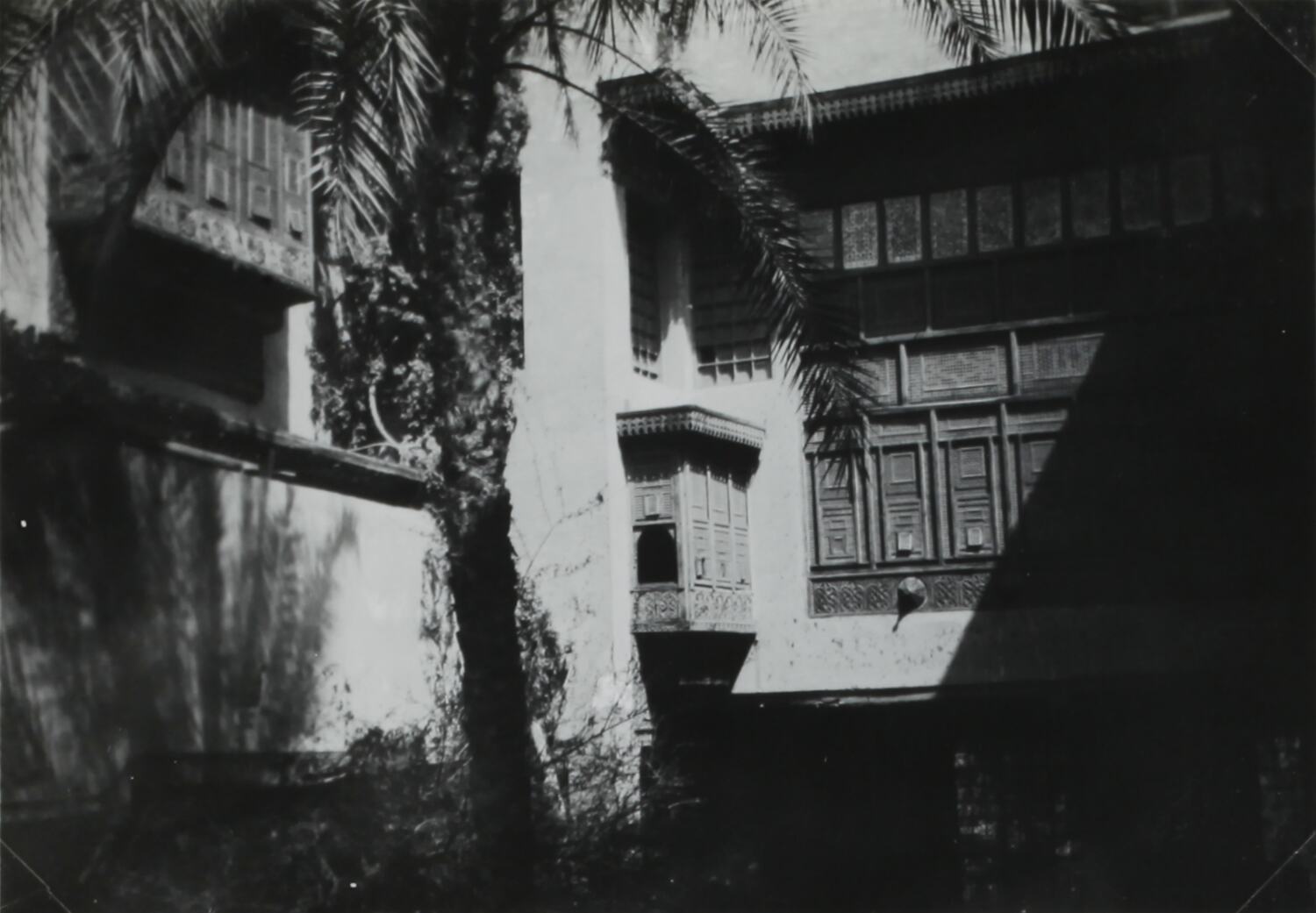 Hand written in white ink on album page below photograph: 'OLD HOUSE IN CAIRO' Hand written in grey pencil on back of photograph: '2' Printed in black ink on back of photograph: 'Velox[repeated]'