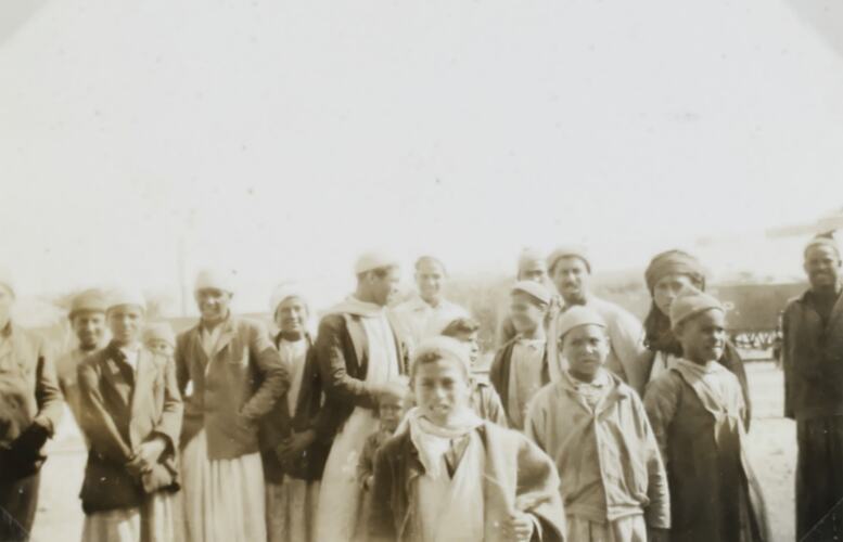Hand written in white ink on album page below photograph: 'GAZA' Printed in black ink on back of photograph: '412' Printed in black ink on back of photograph: 'VELOX' [repeated]