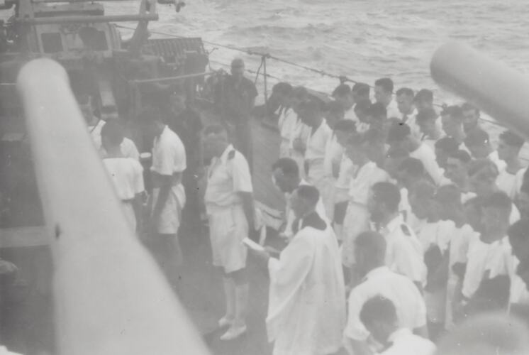 Battleships, Burial Grounds, Canons, Death & Mourning, Oceans, Priests, Sailors, Ships, Uniforms, Wars & Conflicts, World War II, 1939-1945