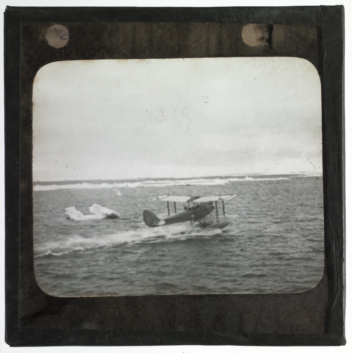 Lantern slide of the Gipsy Moth seaplane, Antarctica.