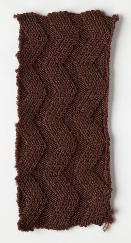 Small knitting sample. brown coloured with zig zag pattern.