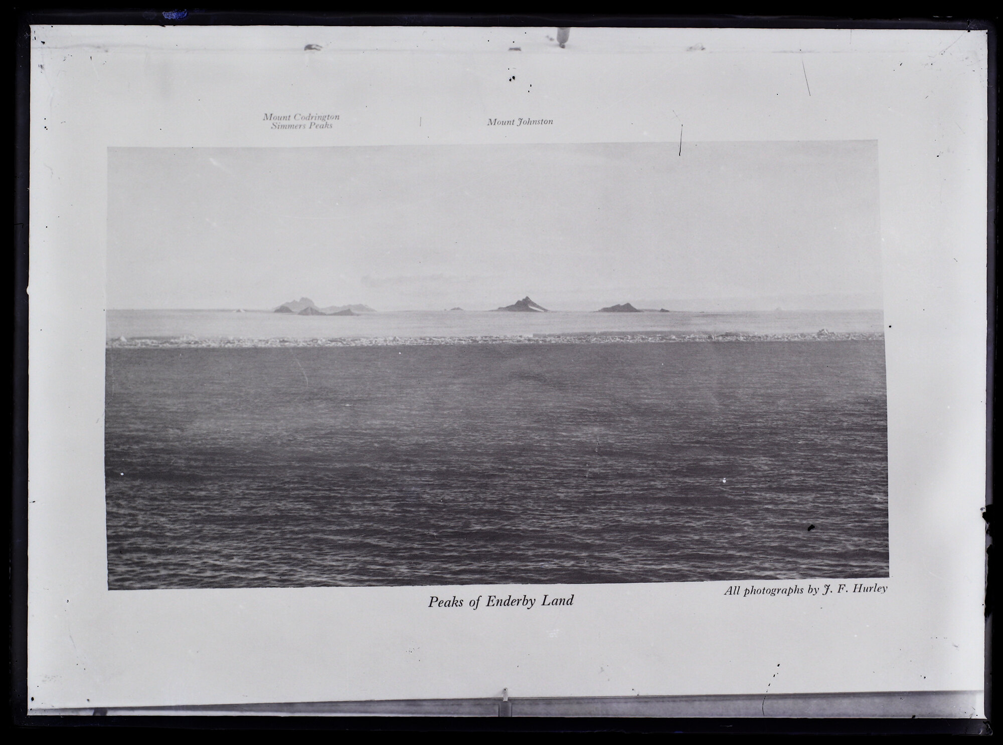 Black and white glass negative of the Coast of Enderby Land, copy of a printed page.