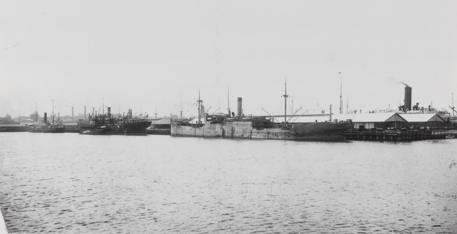 Cargo screw steam ships at Victoria Dock, Melbourne.
