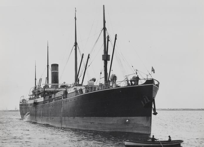 Black and white image of the SS Itonus. It is one of a collection of fifteen black and white photographs showing passenger and cargo ships in Australian waters in the 1920s and 1930s.