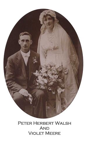 Information on Violet Walsh (nee Meere) provided by donor at time of donation, and by Violet's son Leo Walsh and grandaughter Naomi Walsh during a visit to Melbourne Museum on 12 September 2012. Rosalie Triolo, 2012. 'Our Schools and the War'