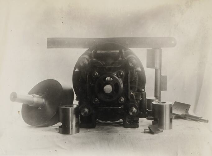 From an album containing 51 photographs of various engines and component parts produced by Crankless Engines (Australia) Pty Ltd.
