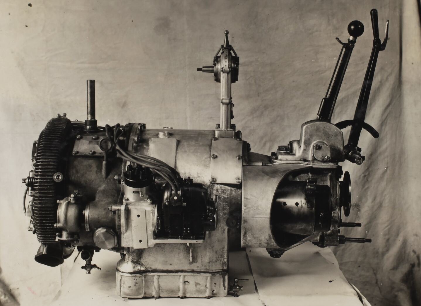 Hand written in grey pencil on album page below photograph: '5 cyl / 2 3/4" x 4.14" Automobile engine / see photo previous page / 77'