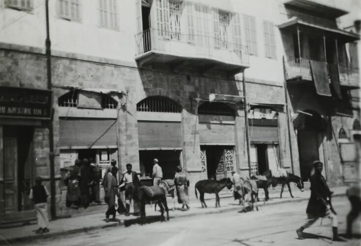 Buildings, Donkeys, Militaria: Australian, Military Memorabilia, Mules, People, Streetscapes, Wars & Conflicts, World War II, 1939-1945