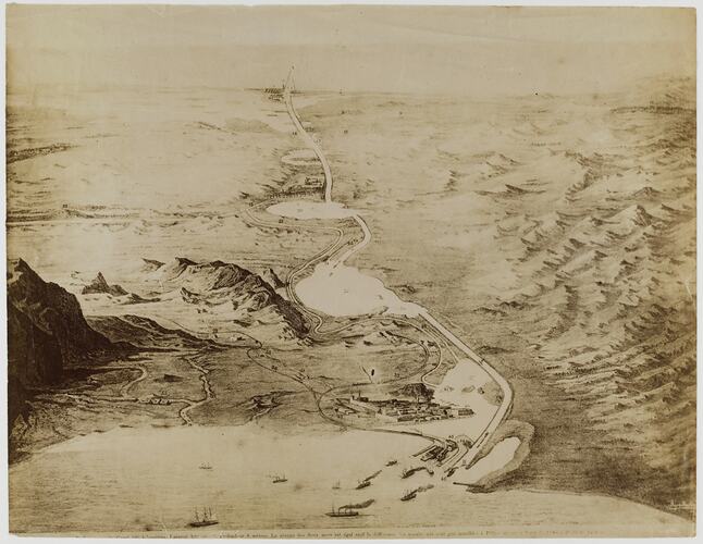One of four albumen silver photographs depicting the Suez Canal, circa 1880s.