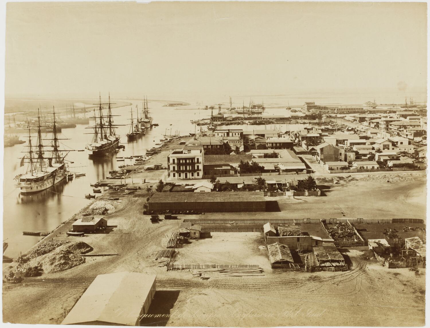 One of four albumen silver photographs depicting the Suez Canal, circa 1880s.