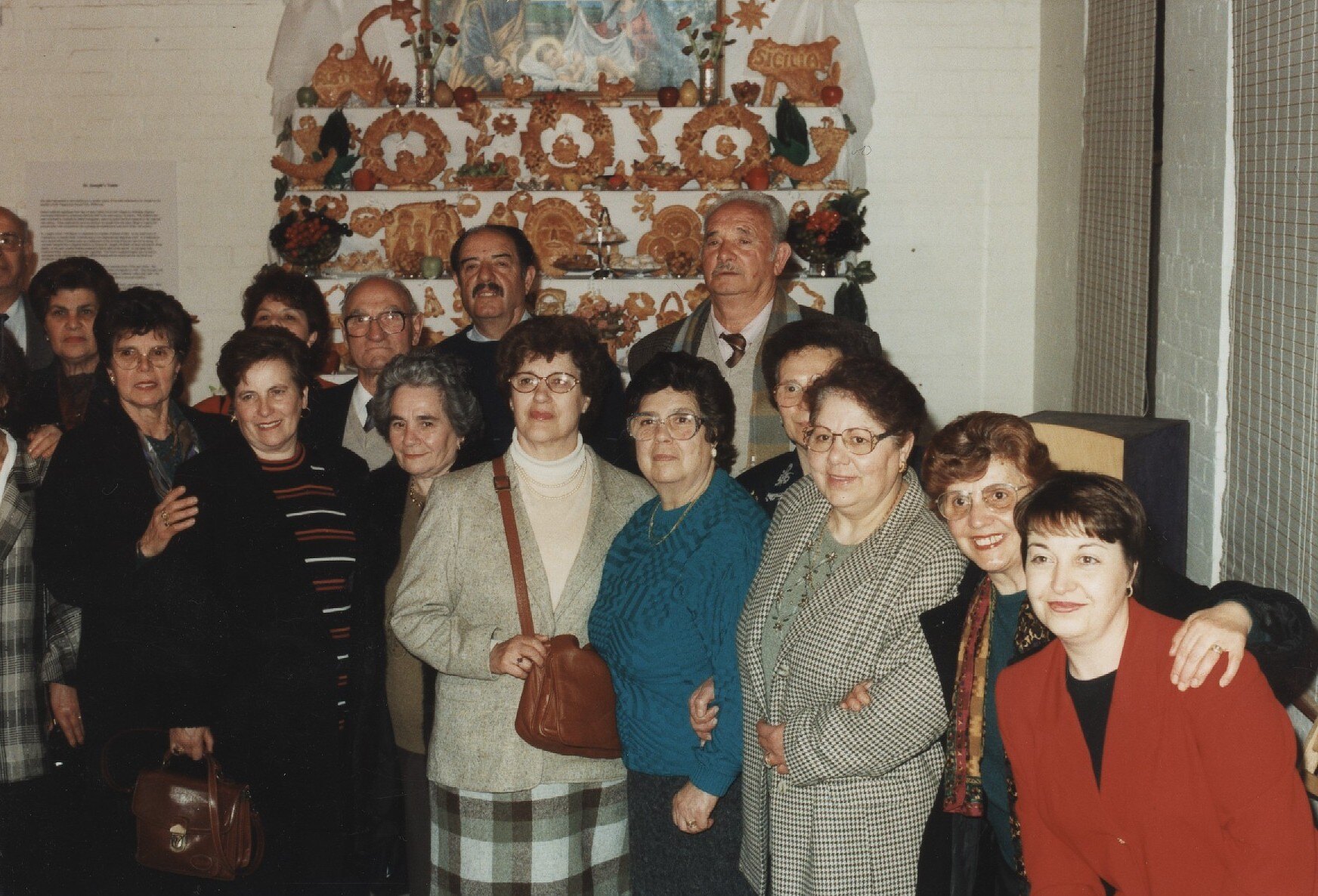 The Italian Historical Society's contribution to the project was a re-creation of a 'St Joseph's Table', a multi-tiered table with bread in many mostly religious shapes. Traditionally, the bread is made as part of the San Giuseppe Day festivities, celebrated annually on 19 March, a significant Italian cultural tradition which is still undertaken in Melbourne by male and female members of Melbourne's Valguarnera Club in Clayton South. Valguarnera is a town in Sicily, from which Maria Tence, who organised the Italian community part of the project, and her parents migrated.