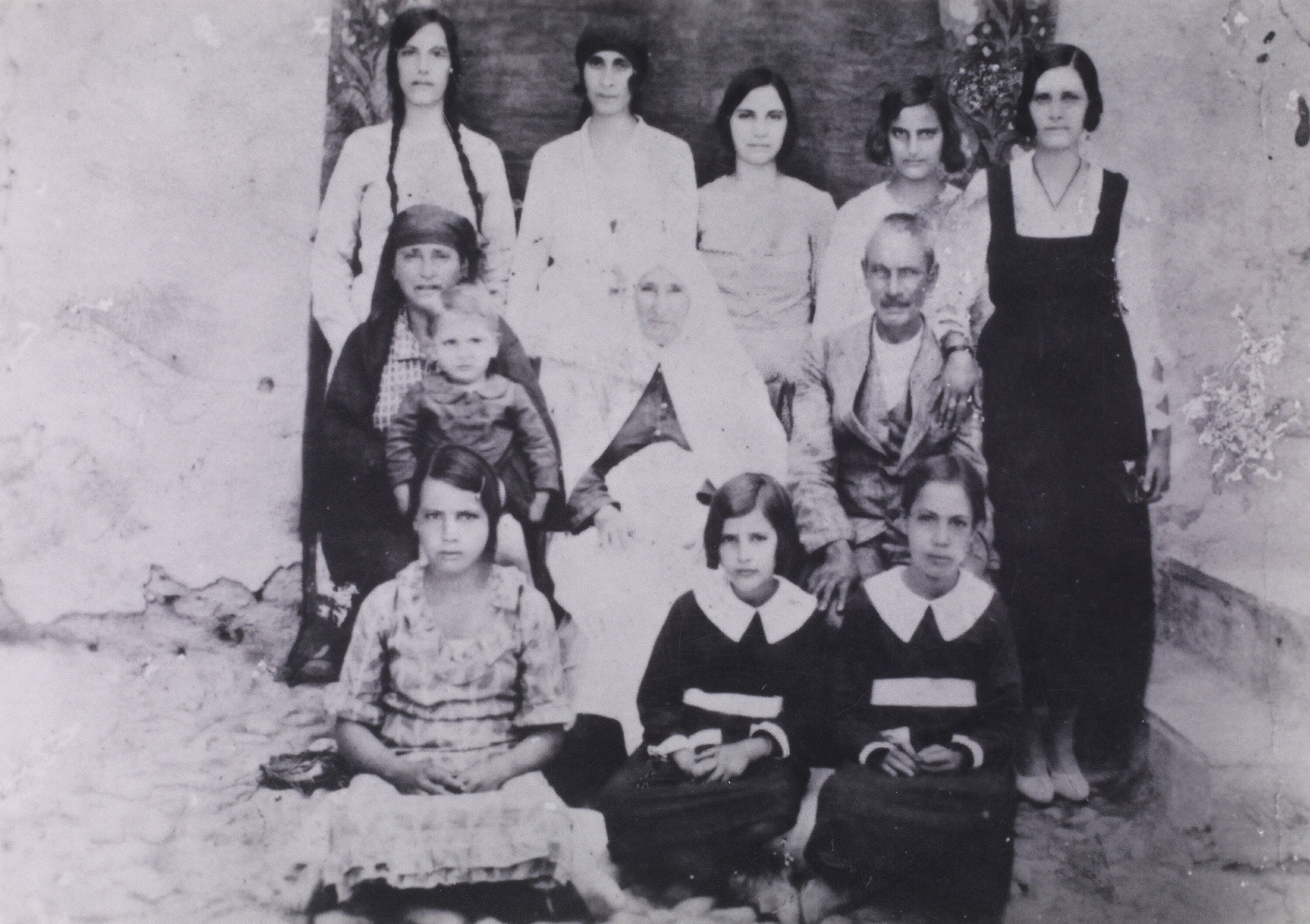 Black and white photograph of the Dervish family in Polis in north-west Cyprus, circa 1935.