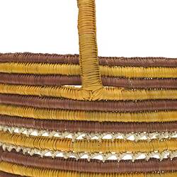 Marilyn Gumurdul's signature style is typically the two sided pandanus handbags, however she is also well known for her coiled baskets. This one is very unusual in that she has created a star design on the lid and the combination of two rows of lace-like coiling into the body of the basket.The single-coil handle extending from the fourth row coil bundle is another signature of her coiled baskets. Marilyn is recognised as a very accomplished fibre artist, and her work was profiled in the exhibition, Woven Forms: Contemporary Basket Making in Australia that opened at Object Gallery in Sydney in September 2005 and then toured nationally. It has also featured in the publication '500 Baskets: Celebration of the Basketmakers Art' (2006).