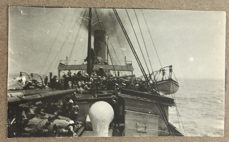 Image depicts the deck of an unknown ship. Cyril Rose is known to have travelled on the transport ship 'Persic' and it is possible that the 'Persic' is the ship depicted.