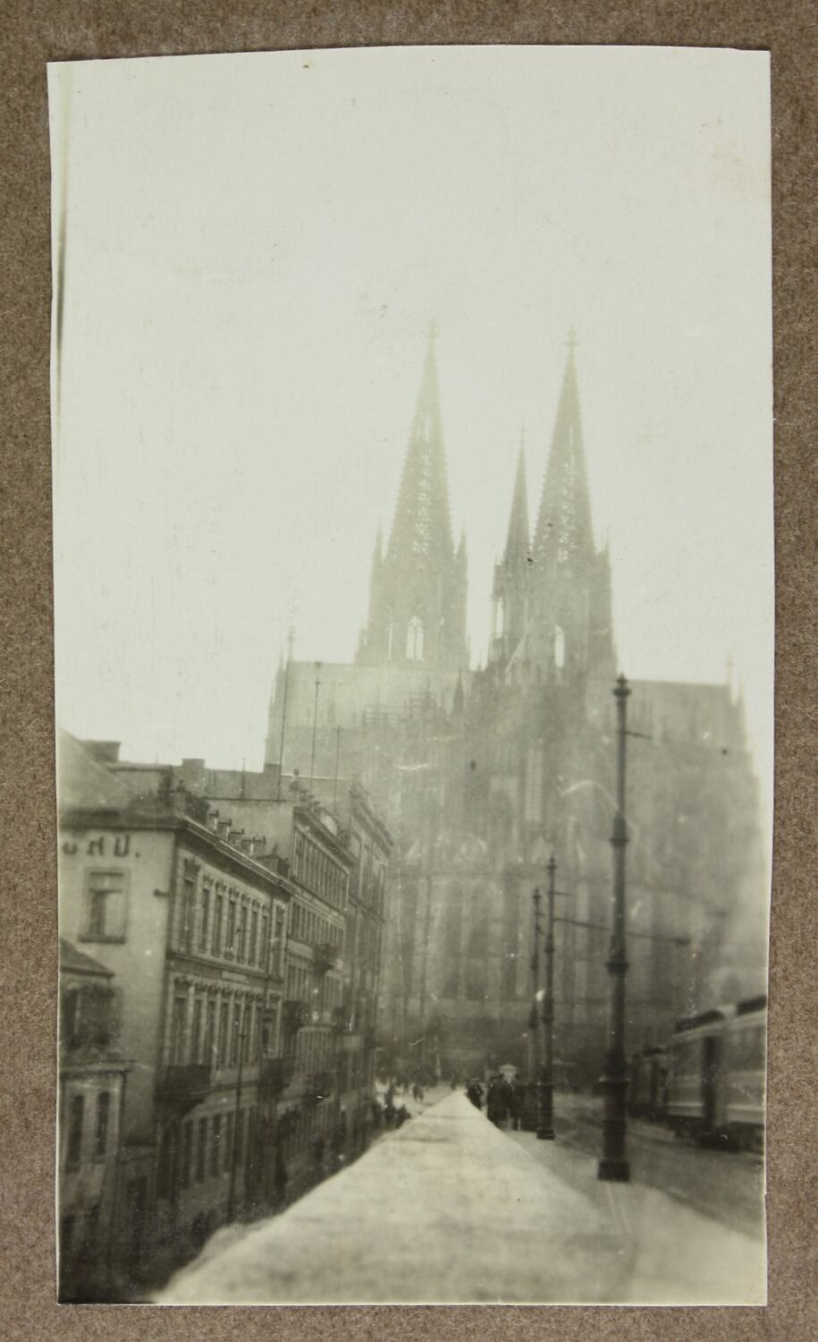 Image depicts the back of Cologne Catherdral in Cologne, Germany. The image seems to have been taken from further down the street. According to his war record Cyril Rose served in France and did not travel to Germany, it is therefore unlikely that he is the photographer.