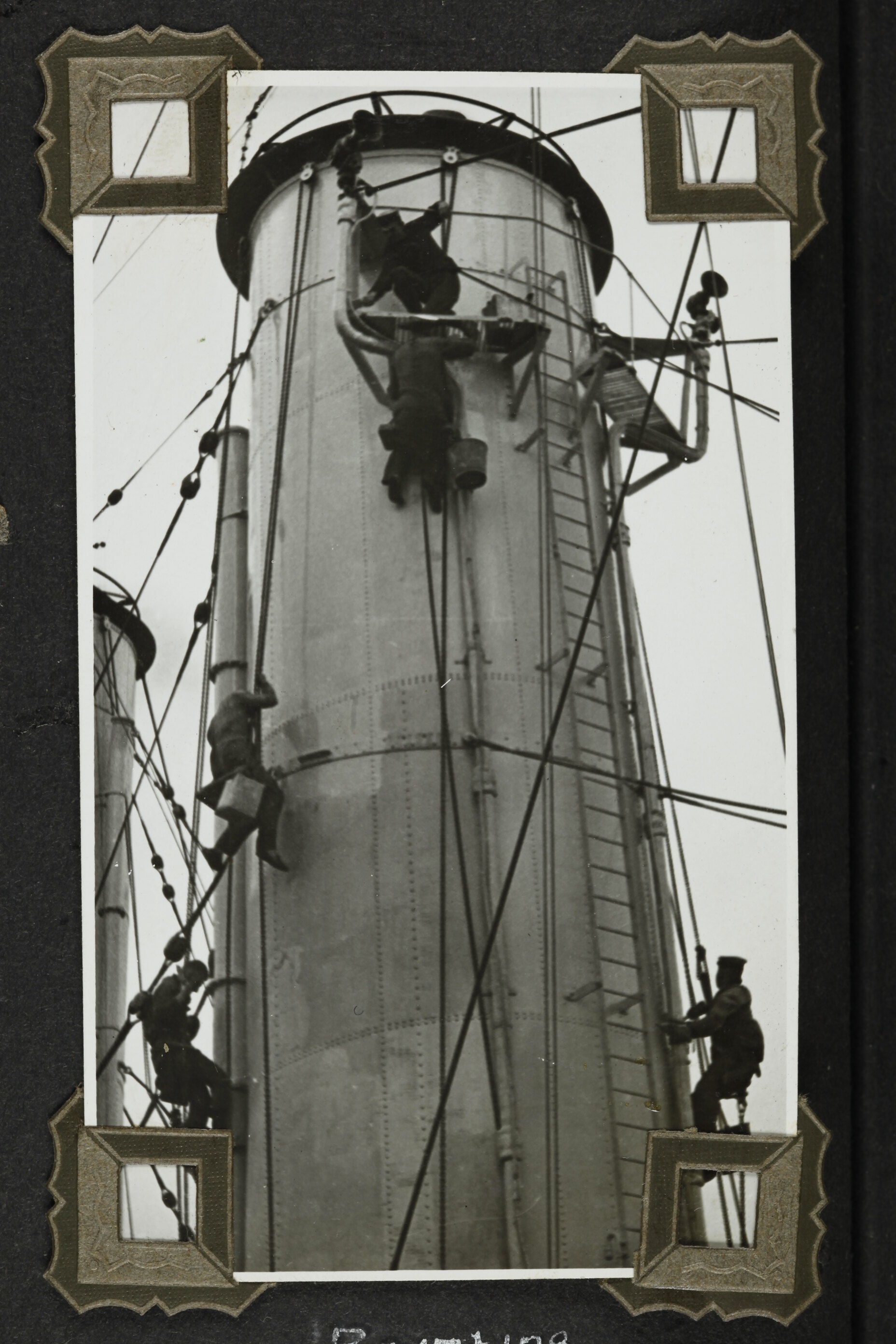 Hand written in white ink on album page; 'Painting / Ships Funnel'
