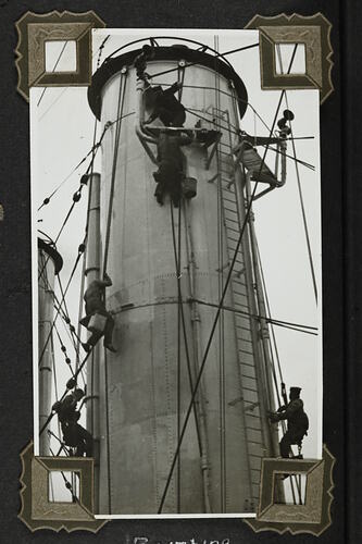 One of 48 photographs in a photographic album. Taken by D.R.Goodwin, Royal Australian Navy (R.A.N.) 1937-1939. The images are of H.M.A.S Cerberus and other naval ships, naval training and field gun crews.