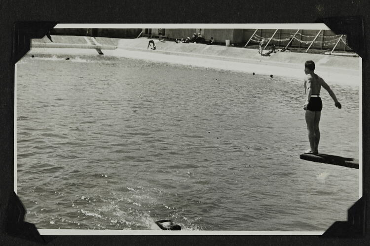 Hand written in white ink on album page; 'Swimming Baths / Flinders Naval Depot'