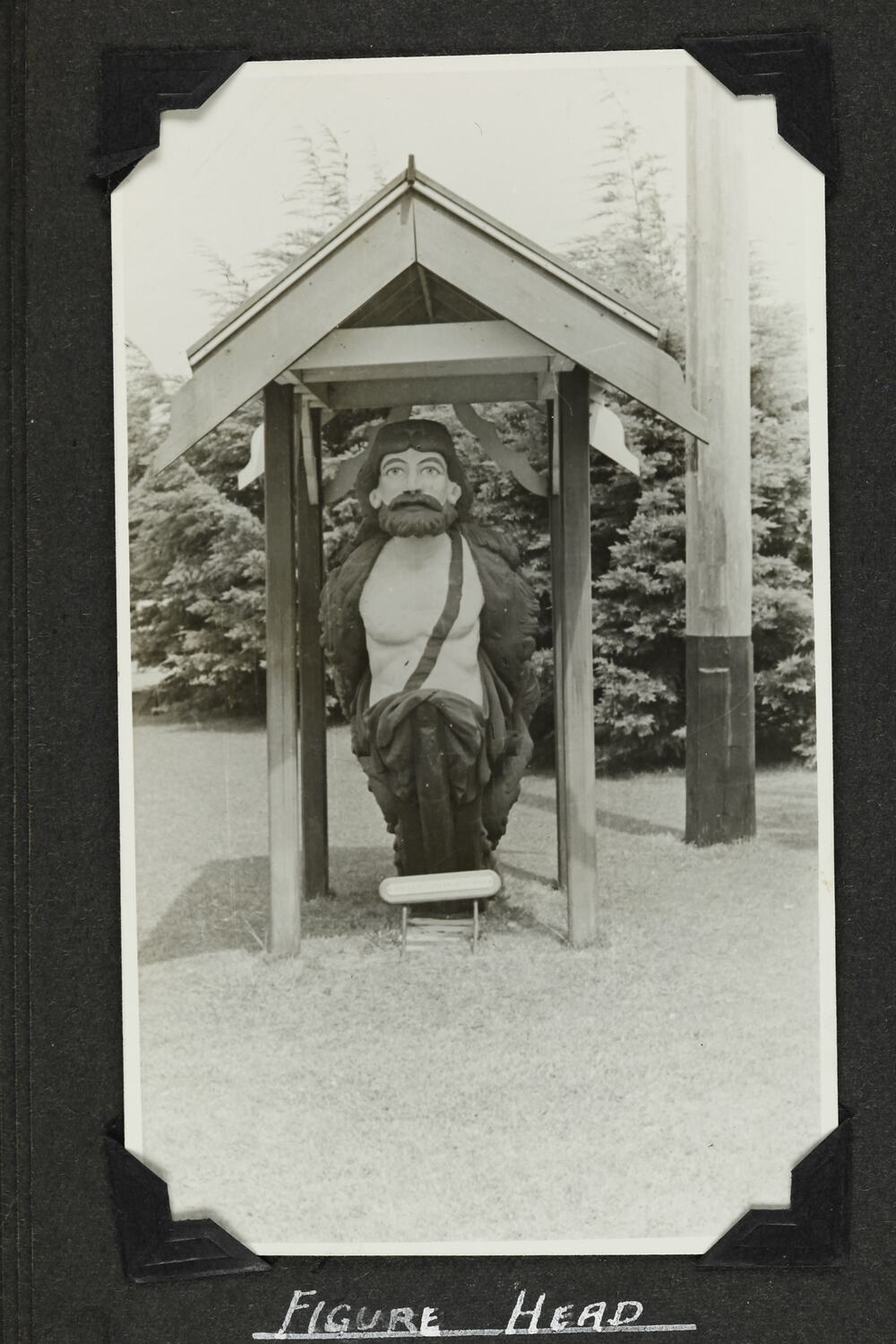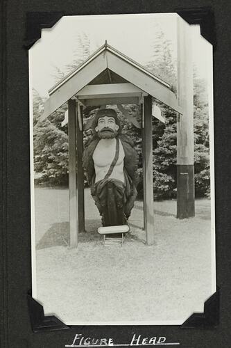 Hand written in white ink on album page; 'Figure Head / H.M.S 'Encounter''