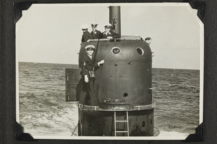 Hand written in white ink on album page; 'CONNING TOWER OF SUBMARINE.'
