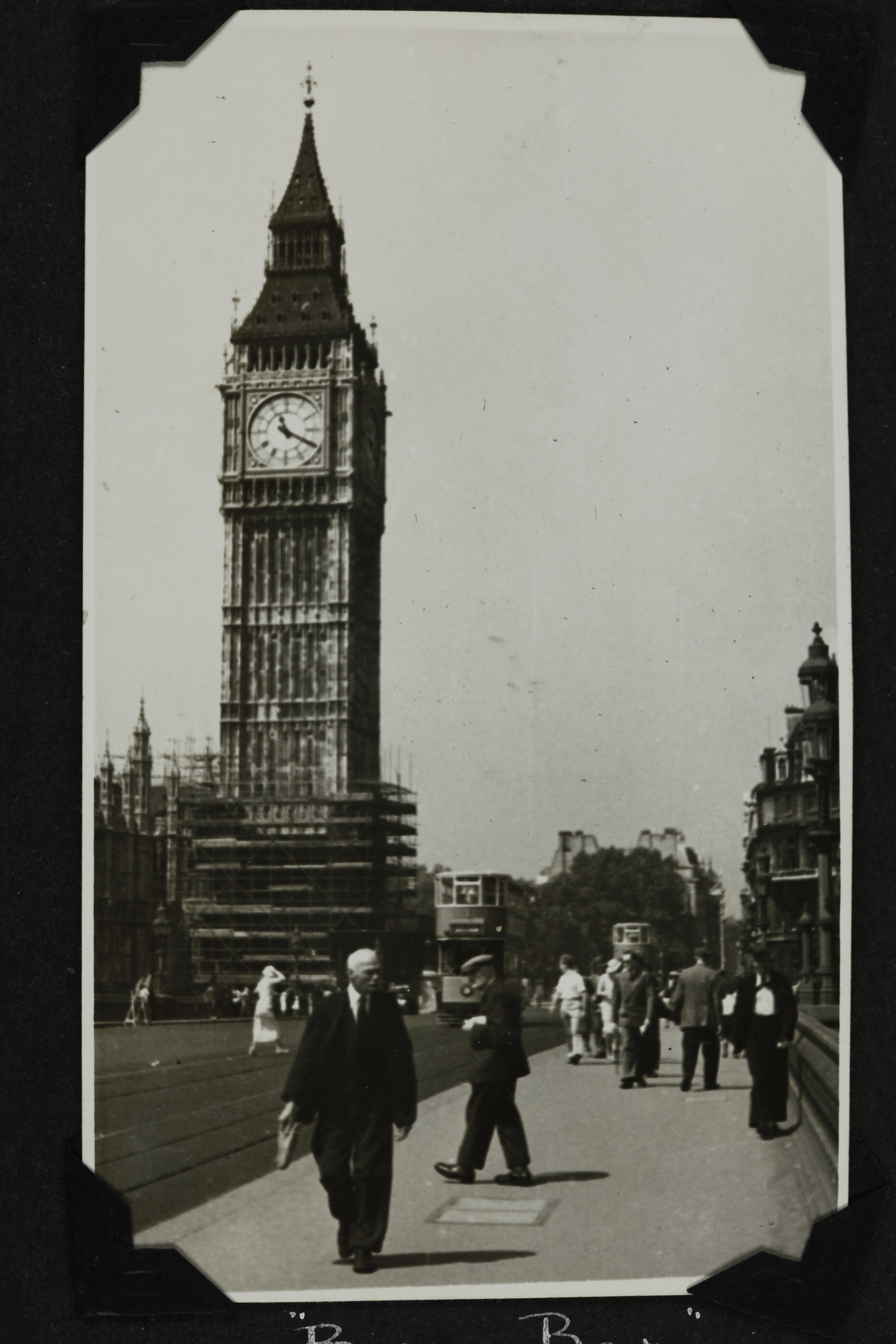 Hand written in white ink on album page; ''Big Ben' / London. England.'
