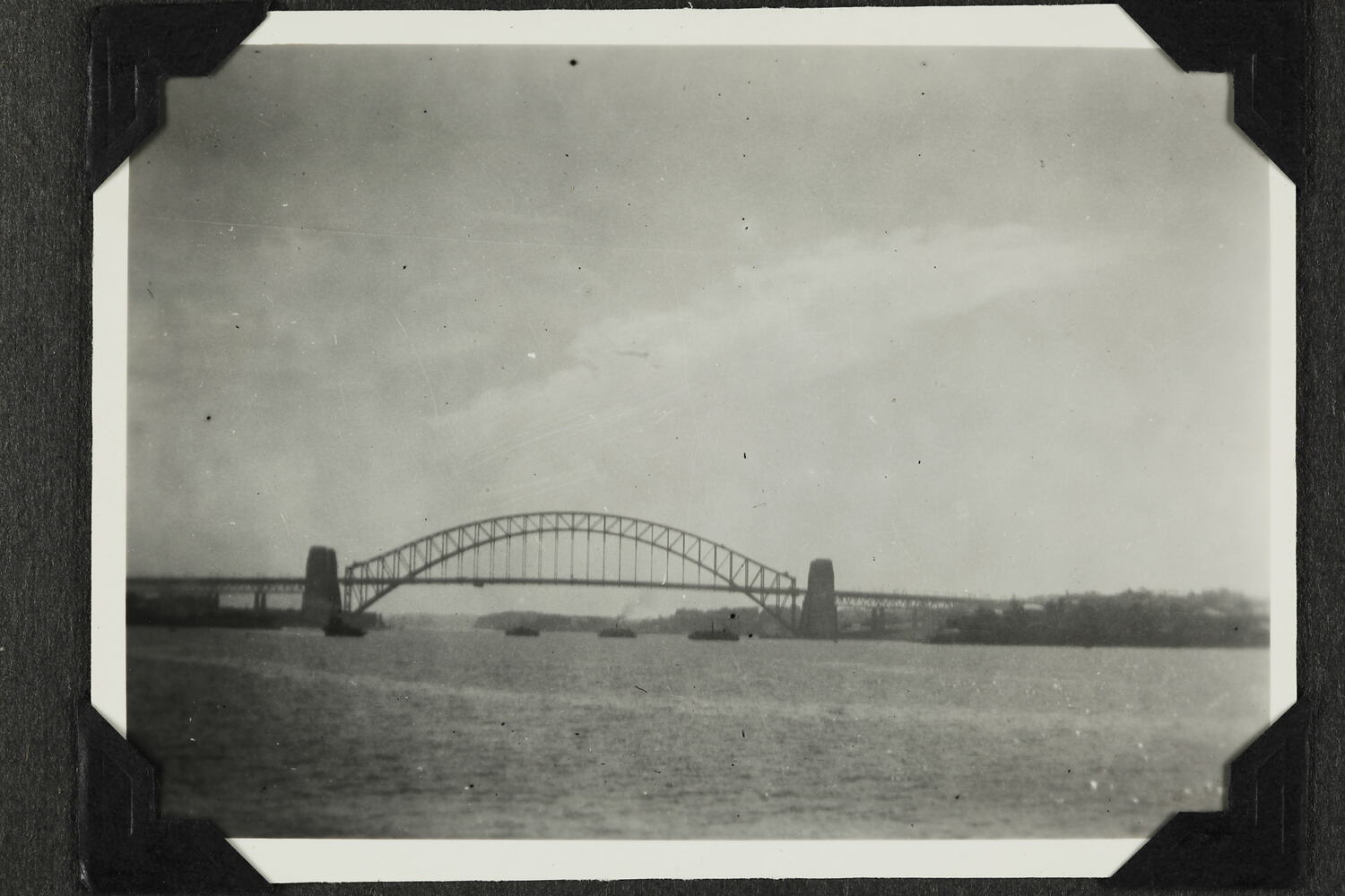 Hand written in white ink on album page; 'HARBOUR BRIDGE. SYDNEY'