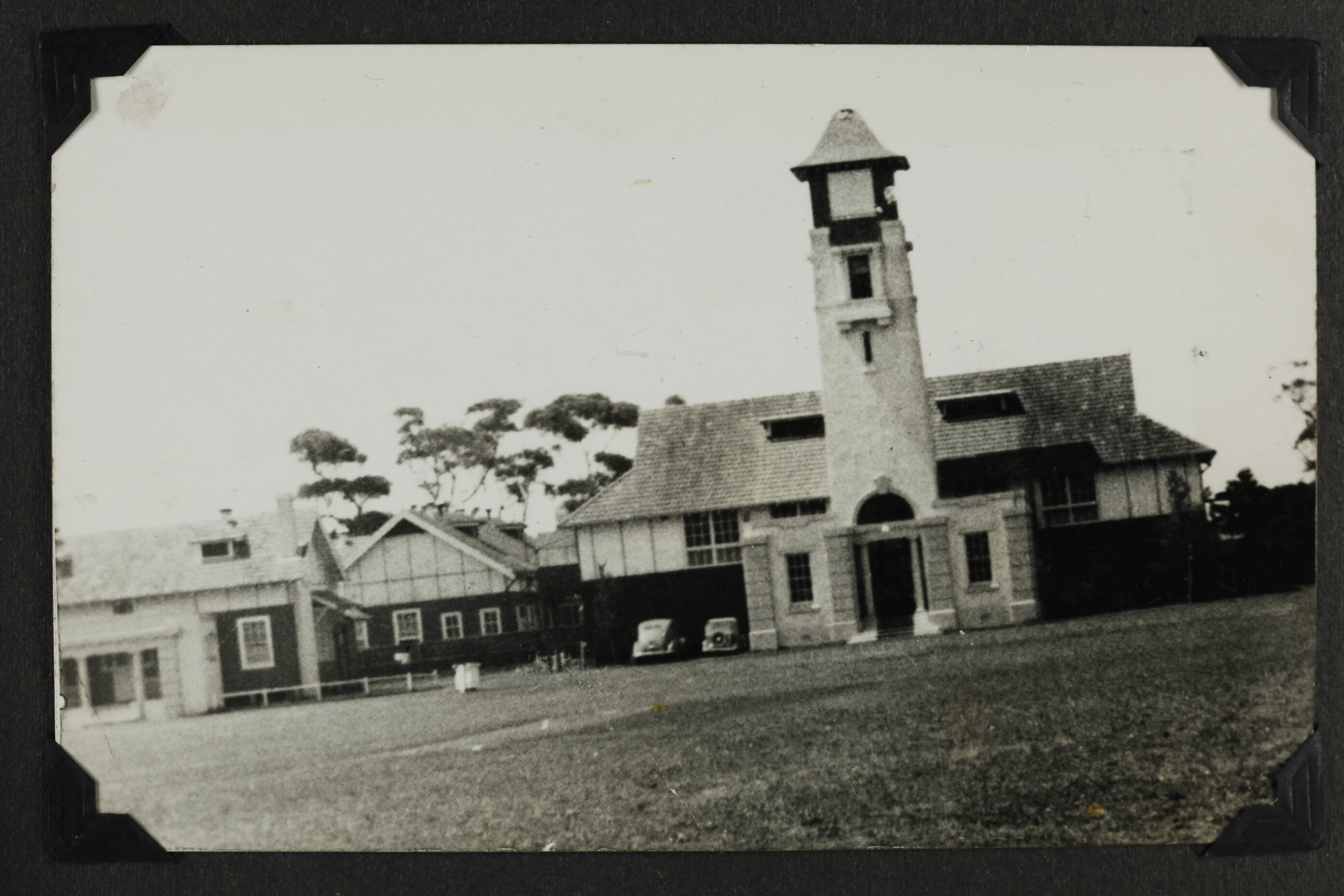 Hand written in white ink on album page; 'OLD NAVAL COLLEGE. / JERVIS BAY.'
