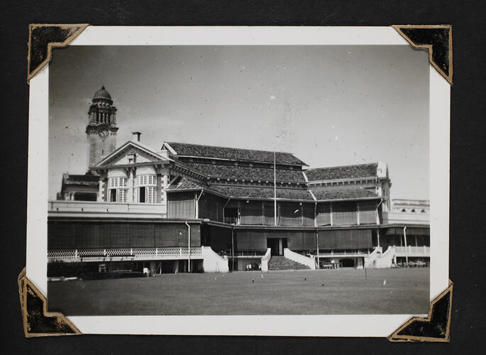 Hand written in white ink on album page; 'SINGAPORE CRICKET CLUB PAVILION.'