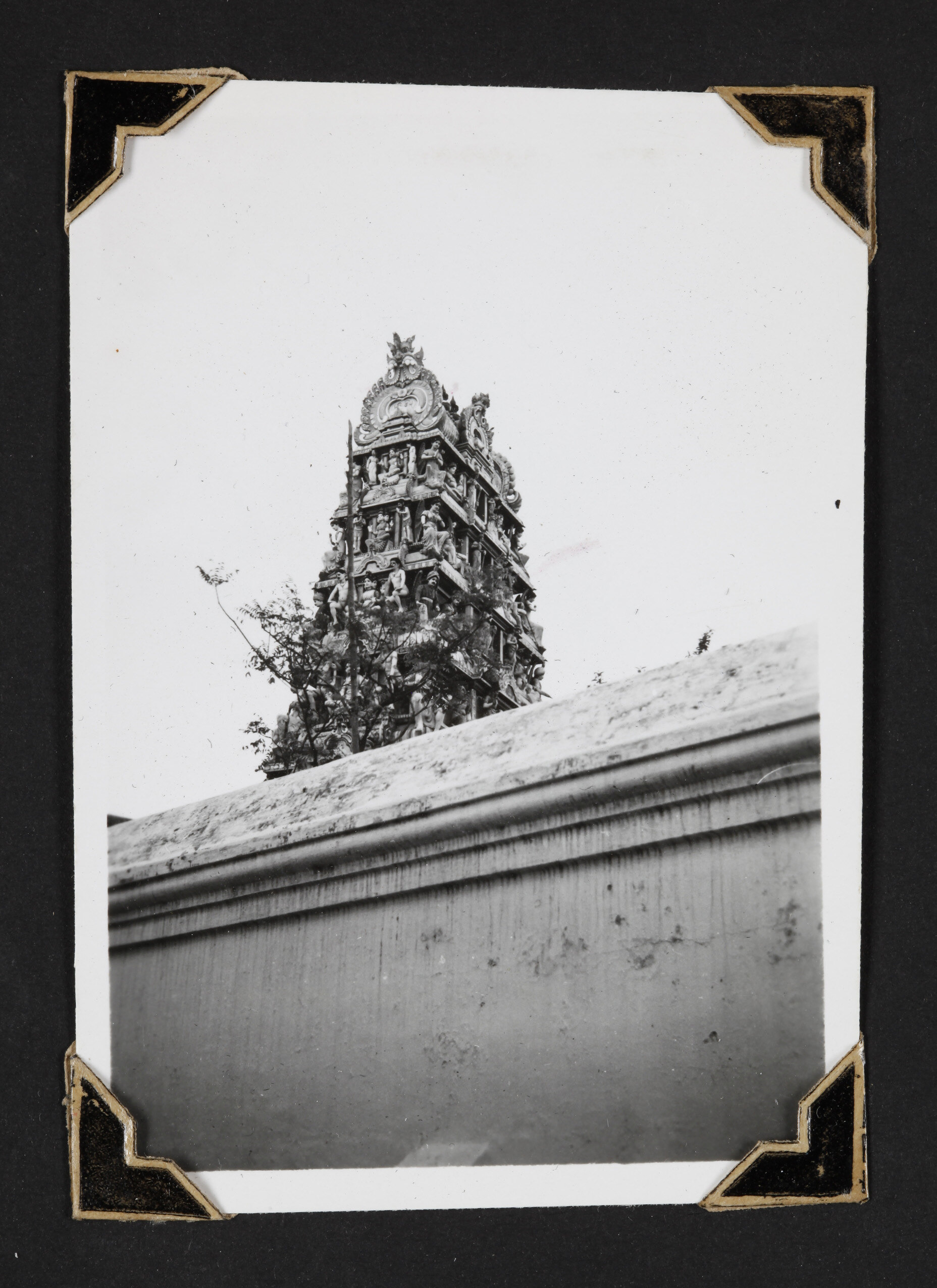The tower of a Hindu Temple in Singapore around the time of World War II.