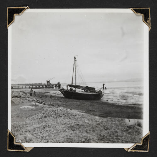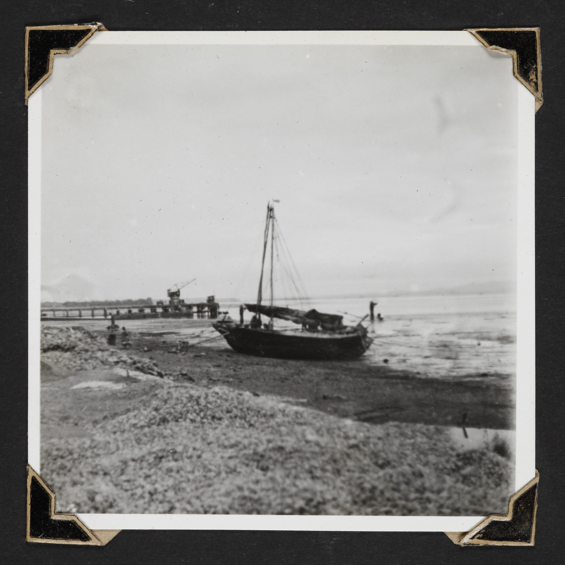 A boat on the Johore Straits foreshore in Singapore around the time of World War II.